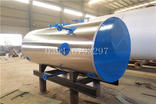 WNS系列蒸汽锅炉是锅壳式、波形炉胆、螺纹烟管型节能锅炉,采用三回程湿背式结构,燃料在炉胆内燃烧产生高温烟气,经回燃室→对流管束→前烟箱→第二对流管束→后烟箱→常压冷凝器→烟囱排入大气。炉胆在设计中采用波形炉胆,能较好的与火焰形状相适应,保证了燃烧充分,波形炉胆降低了炉胆刚性,减小了变形应力,可保证制造质量。同时在回燃室安装了检查孔或弹簧式防爆检查门,本体上设置的人孔有利于锅炉的安全运行及维修。锅炉安全控制严格按照NB/T47034-2013《工业锅炉技术条件》和有关规程规定执行。
