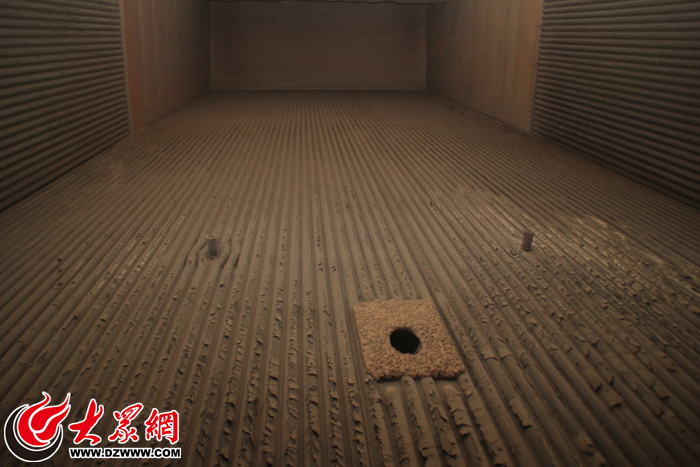 随后,大众网记者跟随着清灰工人进入该热源厂3号水煤浆锅炉内部,体验了一把“锅炉清灰人”的工作。清灰做业时,工人需要穿上连体工作服,戴上防尘罩和安全帽,穿过直径约50公分的入口进入炉膛,锅炉内部漆黑狭窄,通过照明灯可以看到炉膛内部到处都是灰尘,稍微一走动便在空气中漂浮,很快身上就蒙上了一层灰尘。